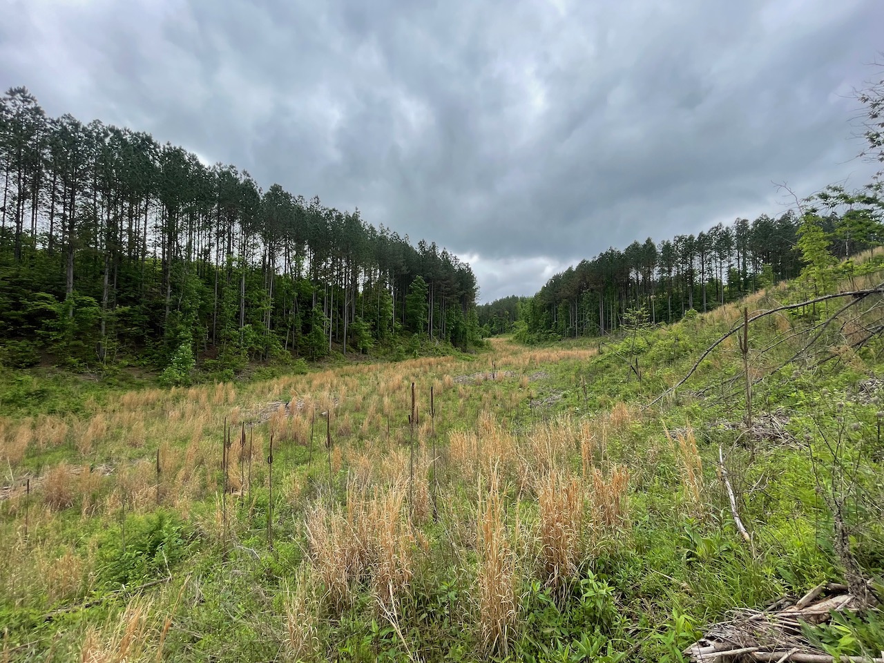 This is a 360 degree video that lets you look in any direction. If it doesn’t play properly here, you may need to watch it on YouTube or in the YouTube app to see the 360 degree effect. This video shows us pulling into the southern portion of the property from the private access road and driving around a cleared area there. At 1:55, we pull back onto the access road and continue to another entrance to the property at 2:53 in the video. From there, we follow a large clearing heading towards the east end of the property, drive past the clearing into the field at the back of the land and then loop back around to end at the edge of the large clearing we came in through.