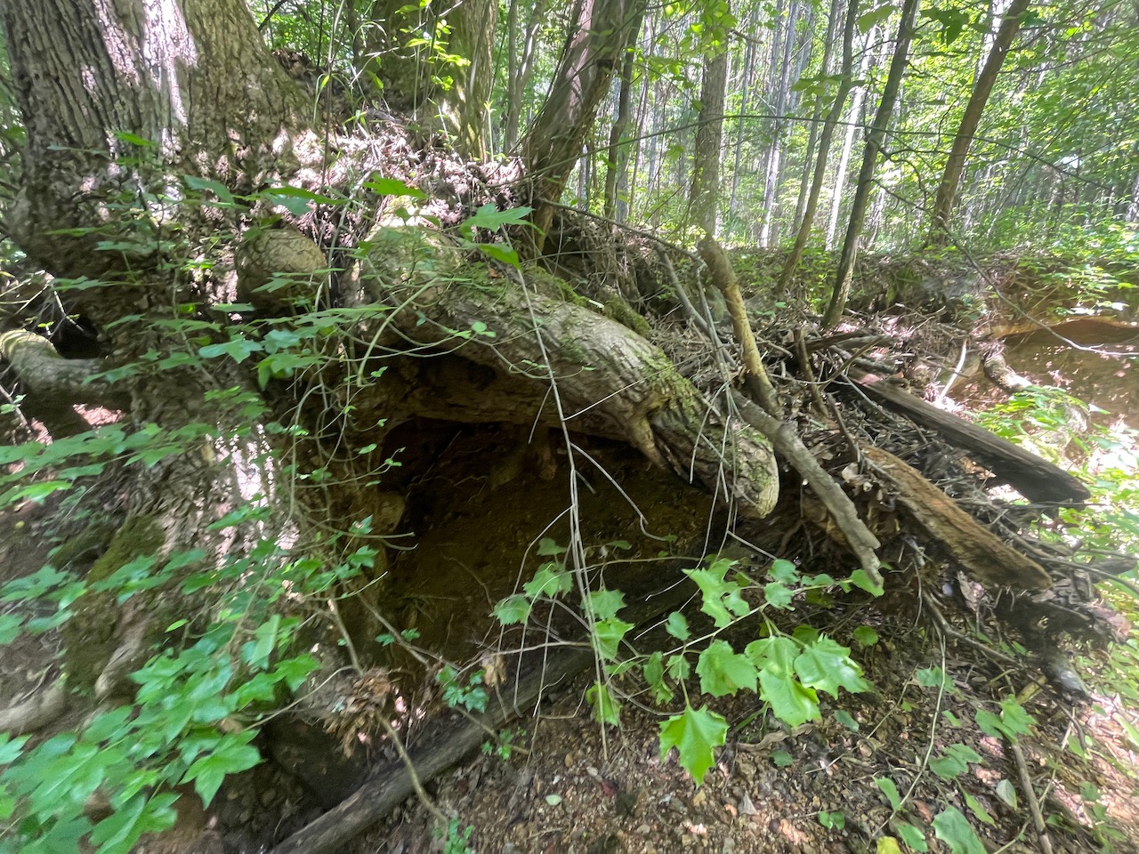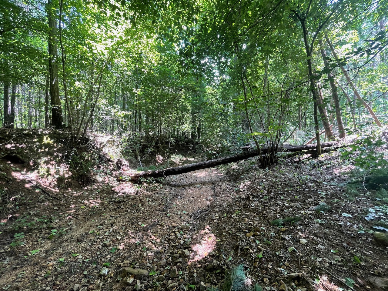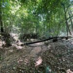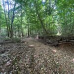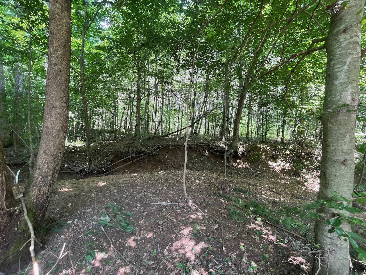 This is a 360 degree video that lets you look in any direction. If it doesn’t play properly here, you may need to watch it on YouTube or in the YouTube app to see the 360 degree effect. This video shows us starting out at the private access road to the property and following a new trail down to a flat, cleared area at a lower portion of the property. We then head back up the trail and end at the same access road entrance.
