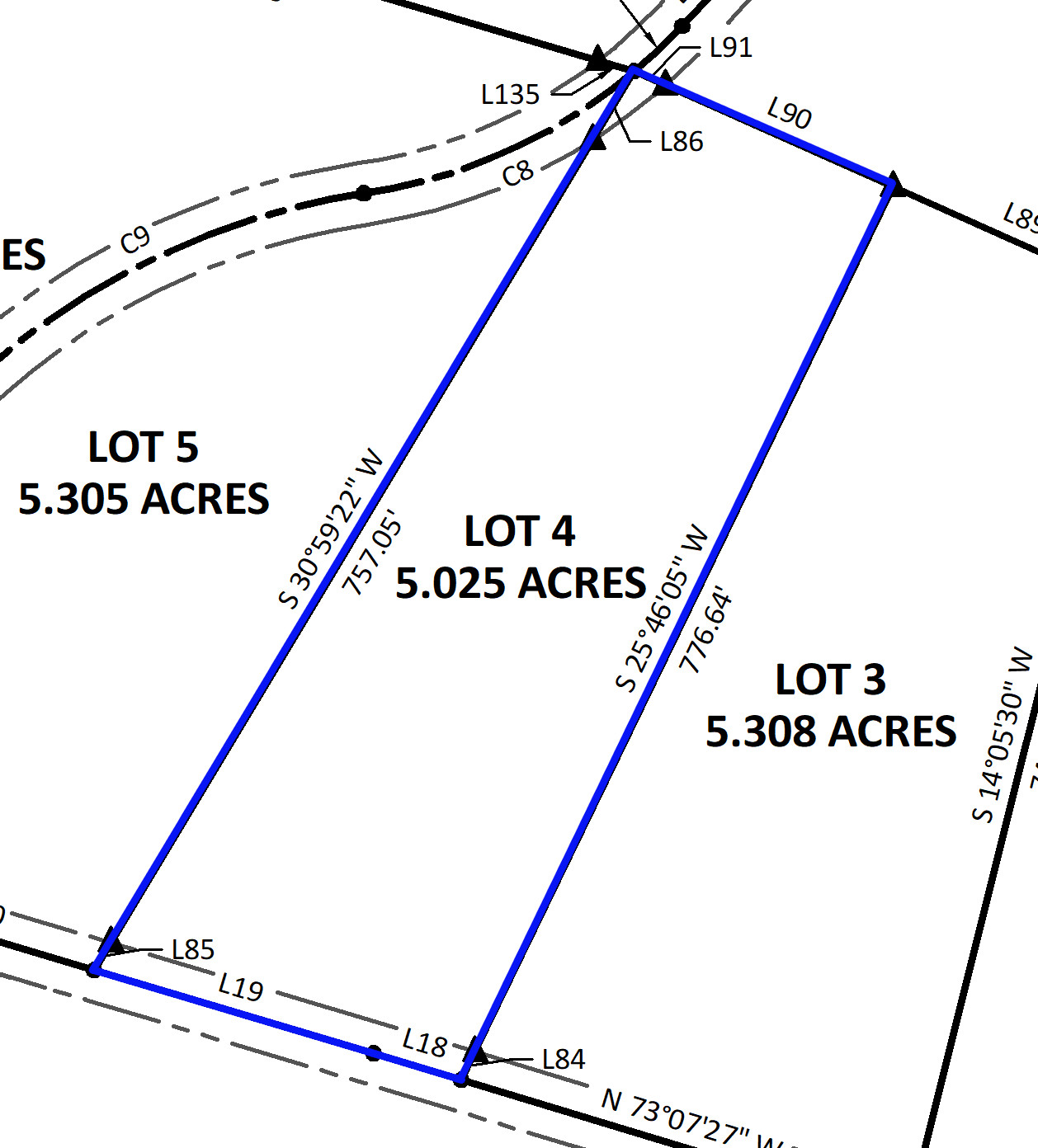 GPS Coordinates To The Center Of The Frontage Of The Tract: