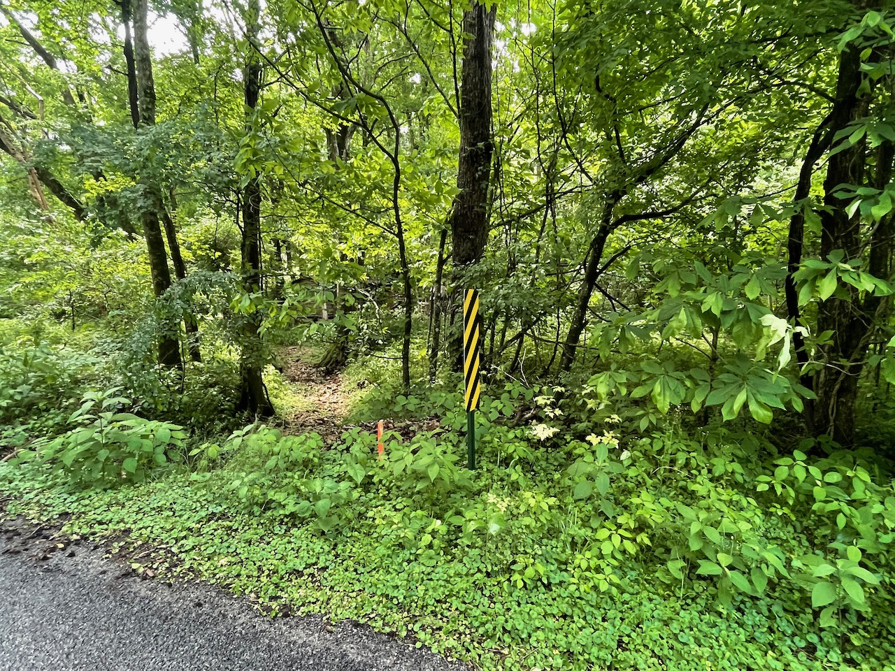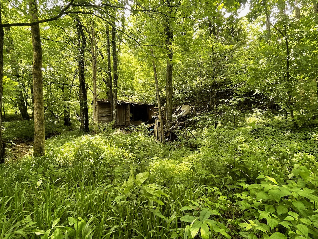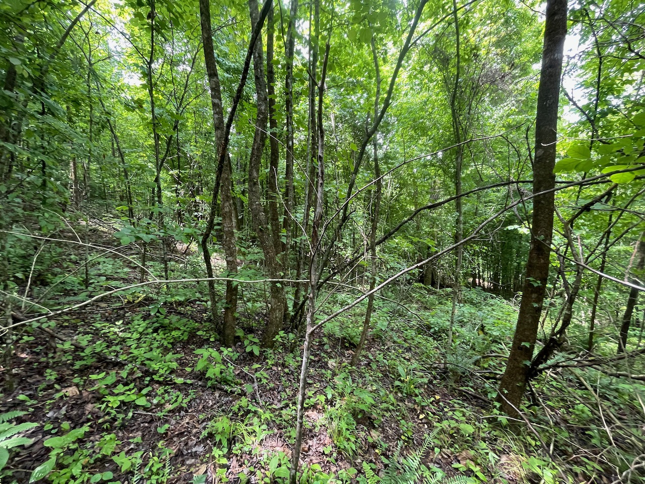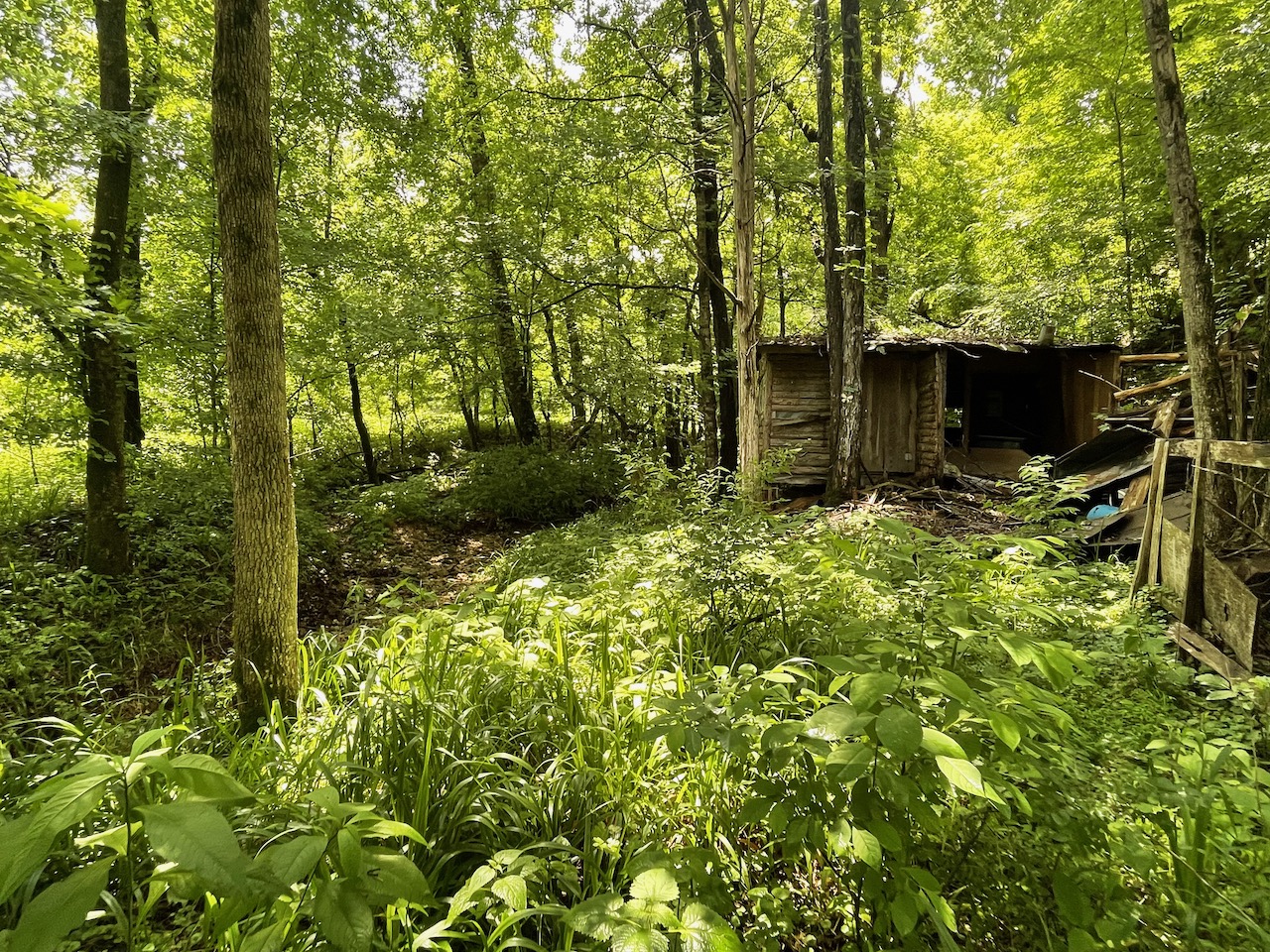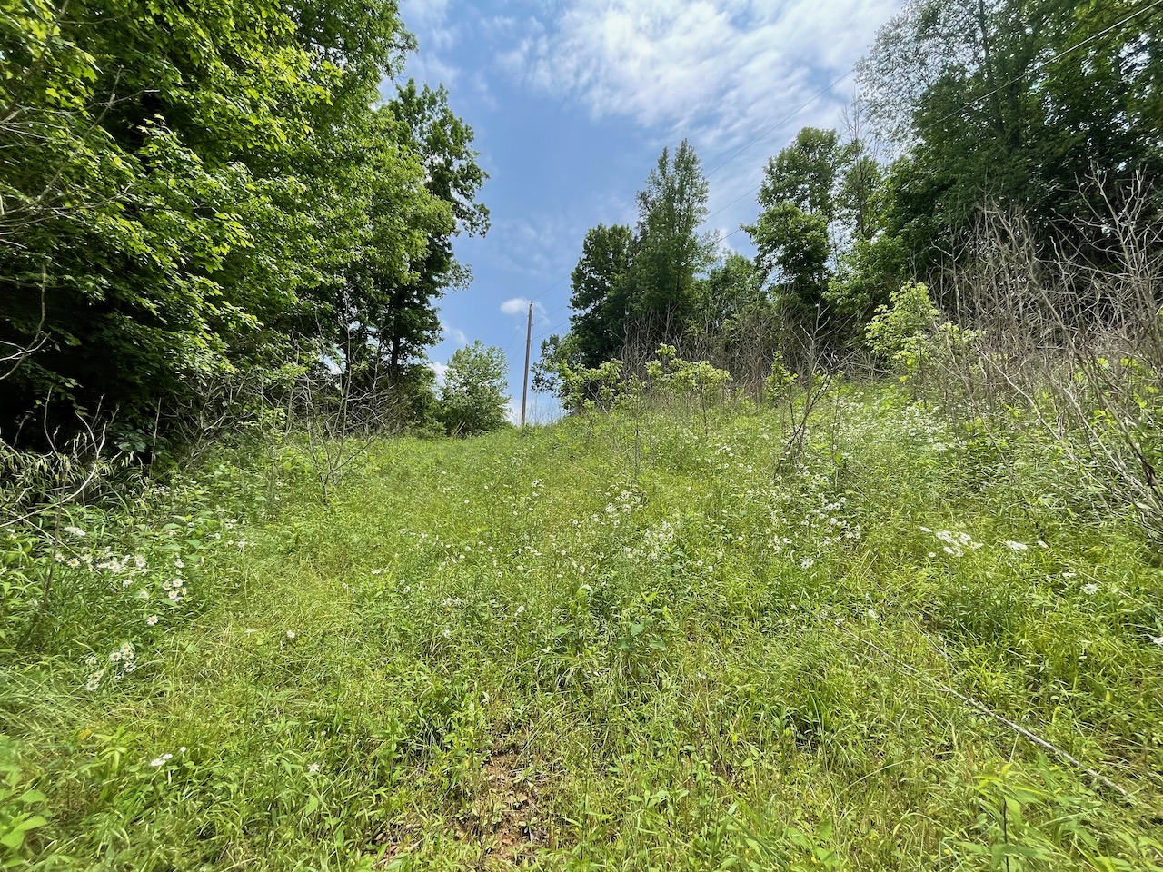8.41 Acres – TN land for sale with power at the front of the tract. From the paved, county frontage, the tract is relatively flat and then progressively ramps up along a large hillside. From the LIDAR scan, you can see an old logging road that could be improved to get access midway up the hillside. The eastern property line follows a seasonal creek bed at the bottom of Grover Hollow. The remains of an old shanty are on the front portion of the property.