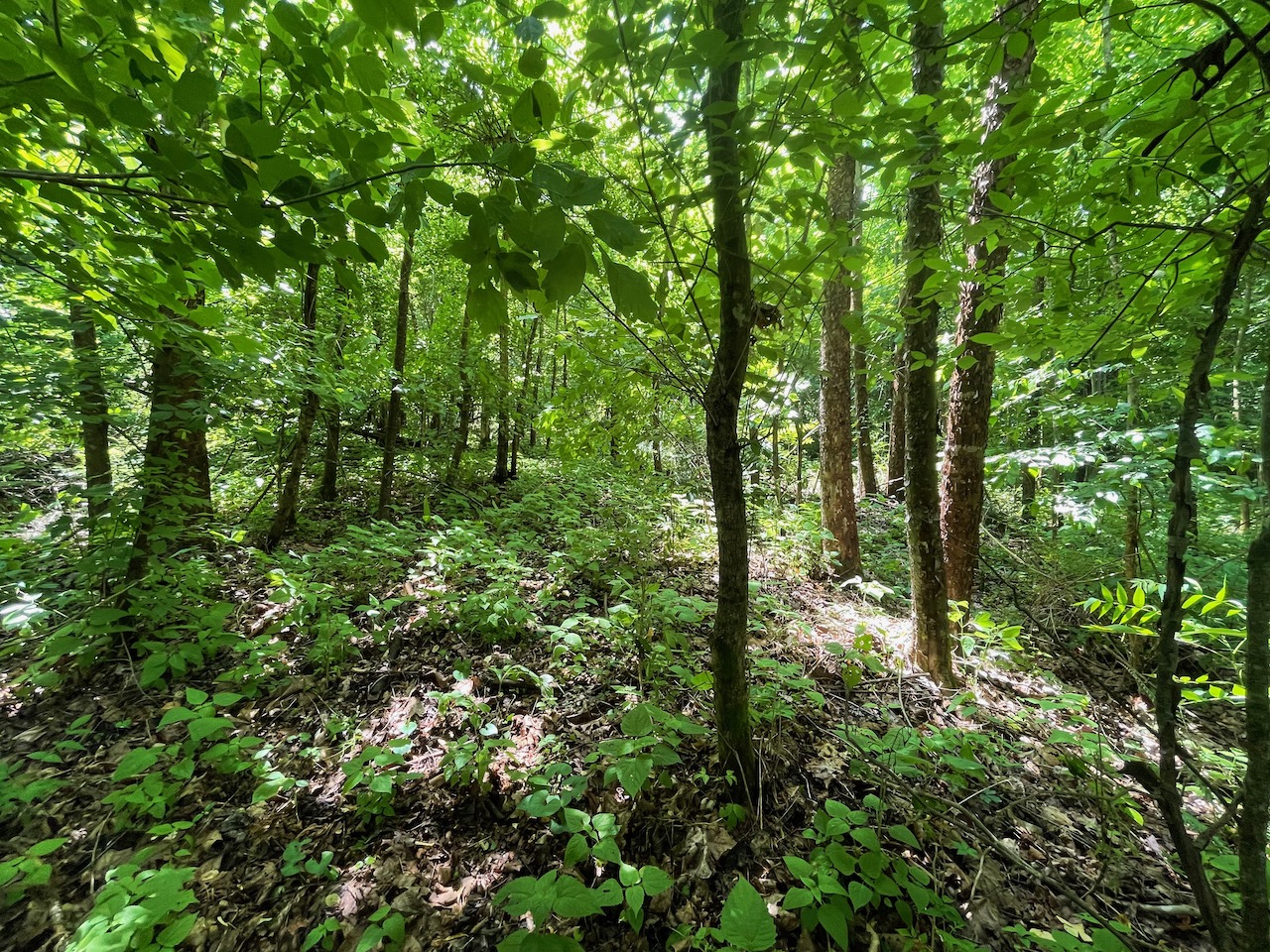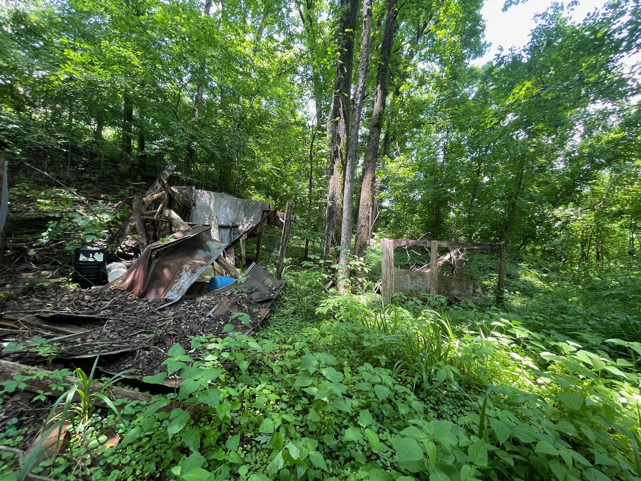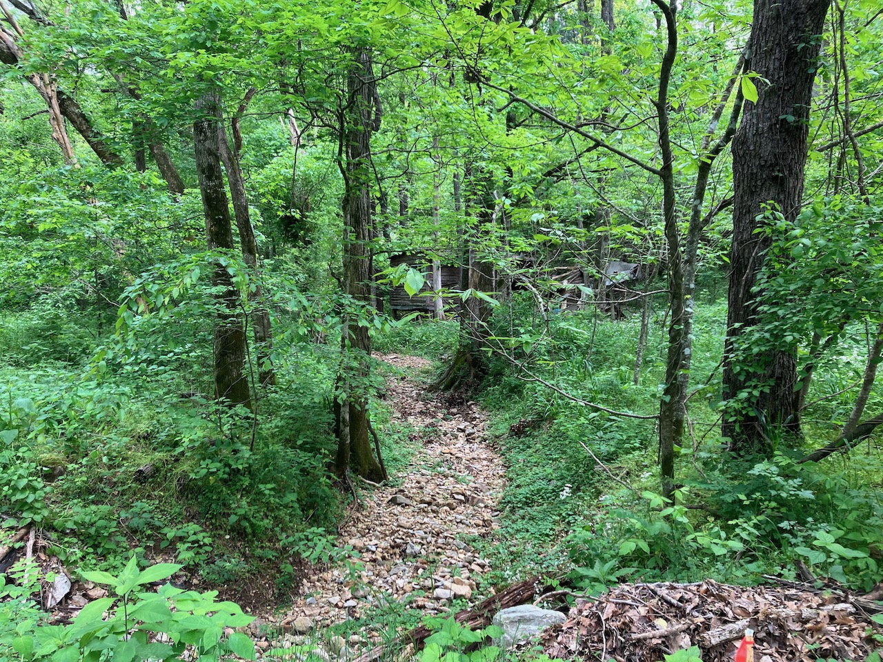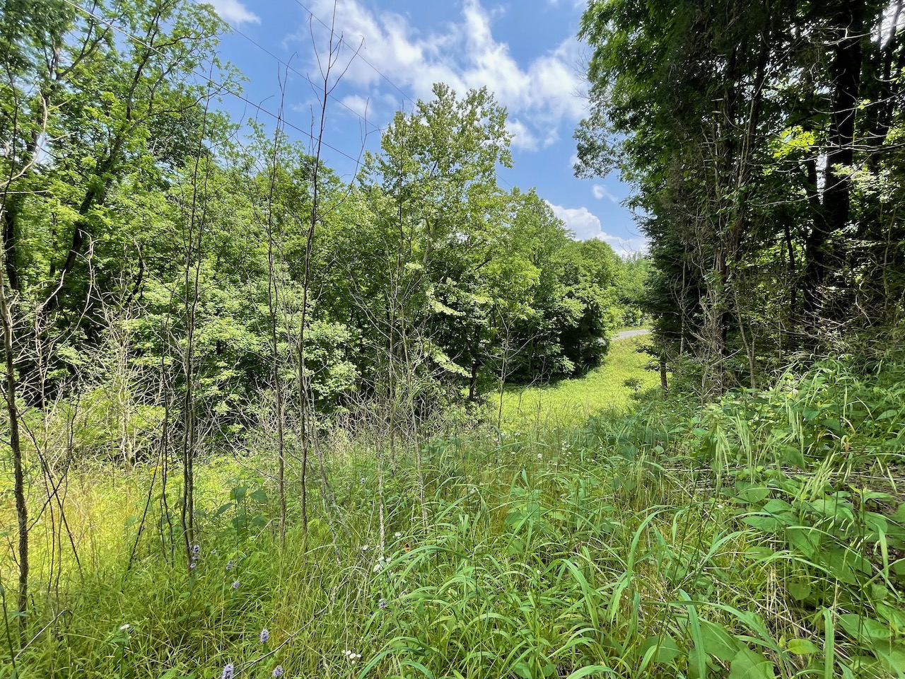 8.41 Acres – TN land for sale with power at the front of the tract. From the paved, county frontage, the tract is relatively flat and then progressively ramps up along a large hillside. From the LIDAR scan, you can see an old logging road that could be improved to get access midway up the hillside. The eastern property line follows a seasonal creek bed at the bottom of Grover Hollow. The remains of an old shanty are on the front portion of the property.