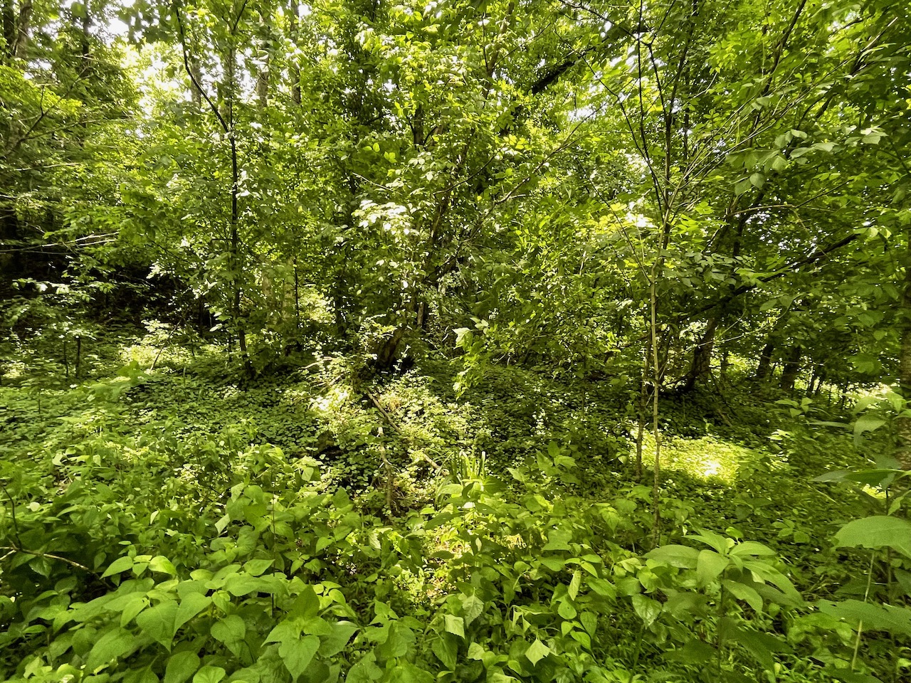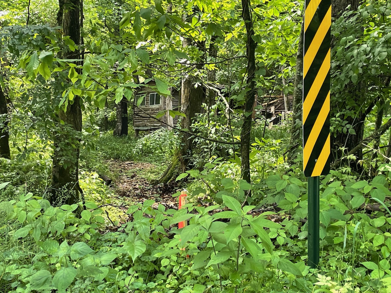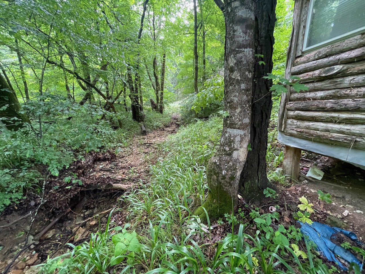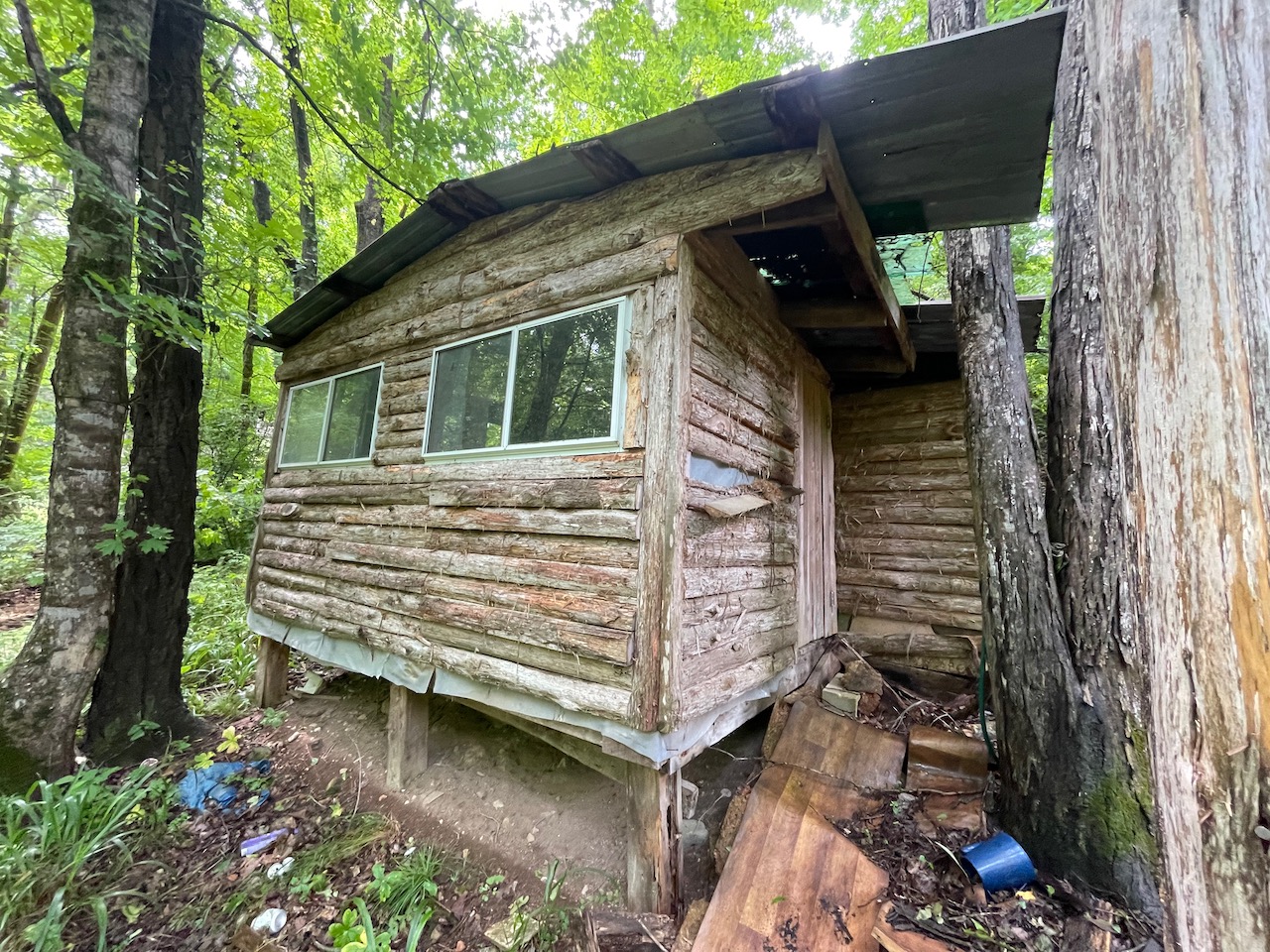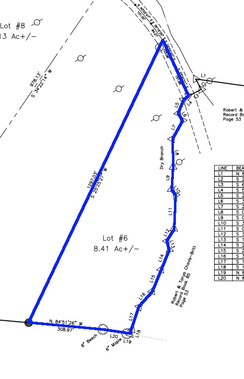 8.41 Acres – TN land for sale with power at the front of the tract. From the paved, county frontage, the tract is relatively flat and then progressively ramps up along a large hillside. From the LIDAR scan, you can see an old logging road that could be improved to get access midway up the hillside. The eastern property line follows a seasonal creek bed at the bottom of Grover Hollow. The remains of an old shanty are on the front portion of the property.