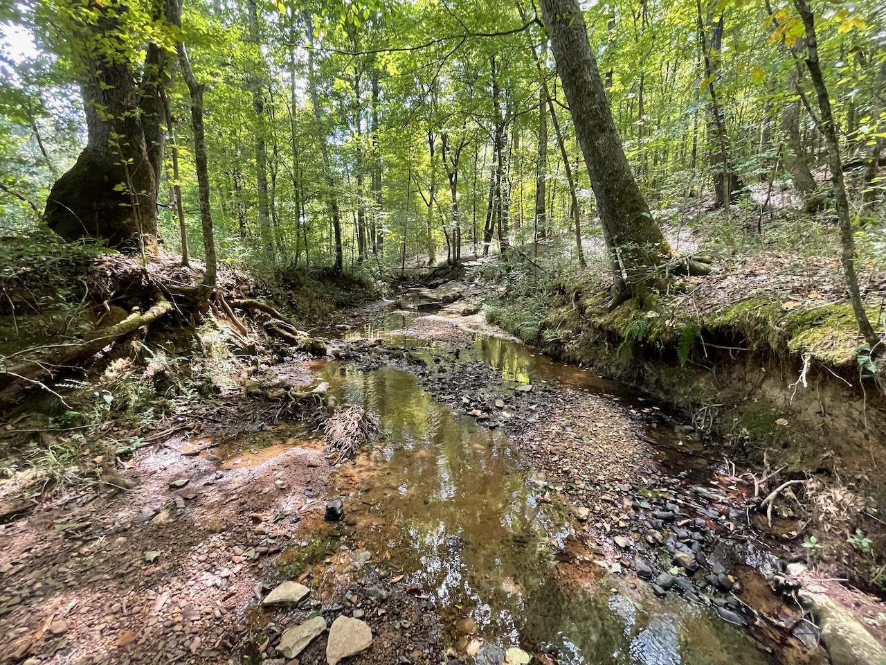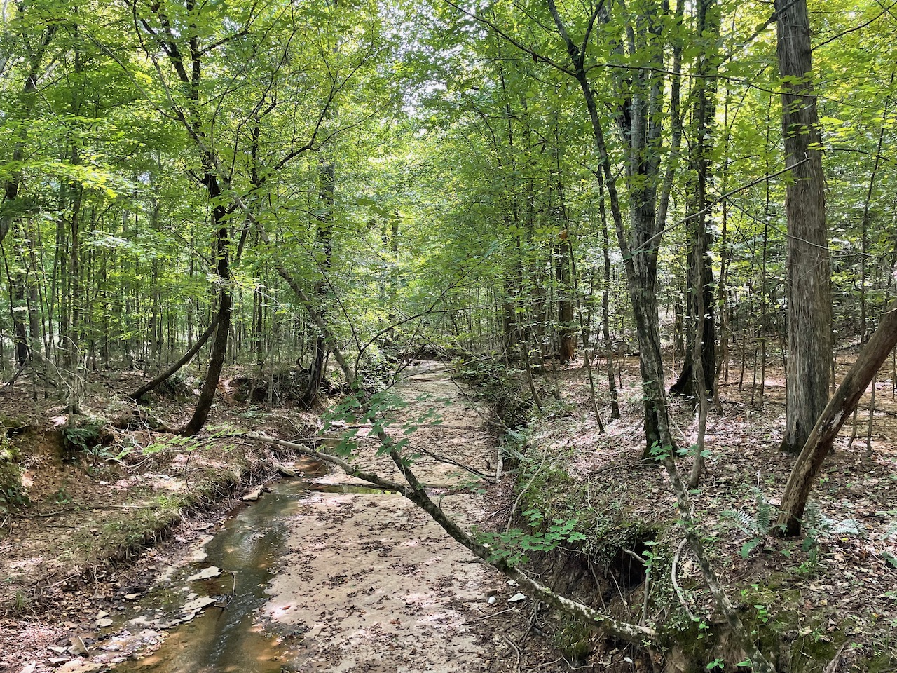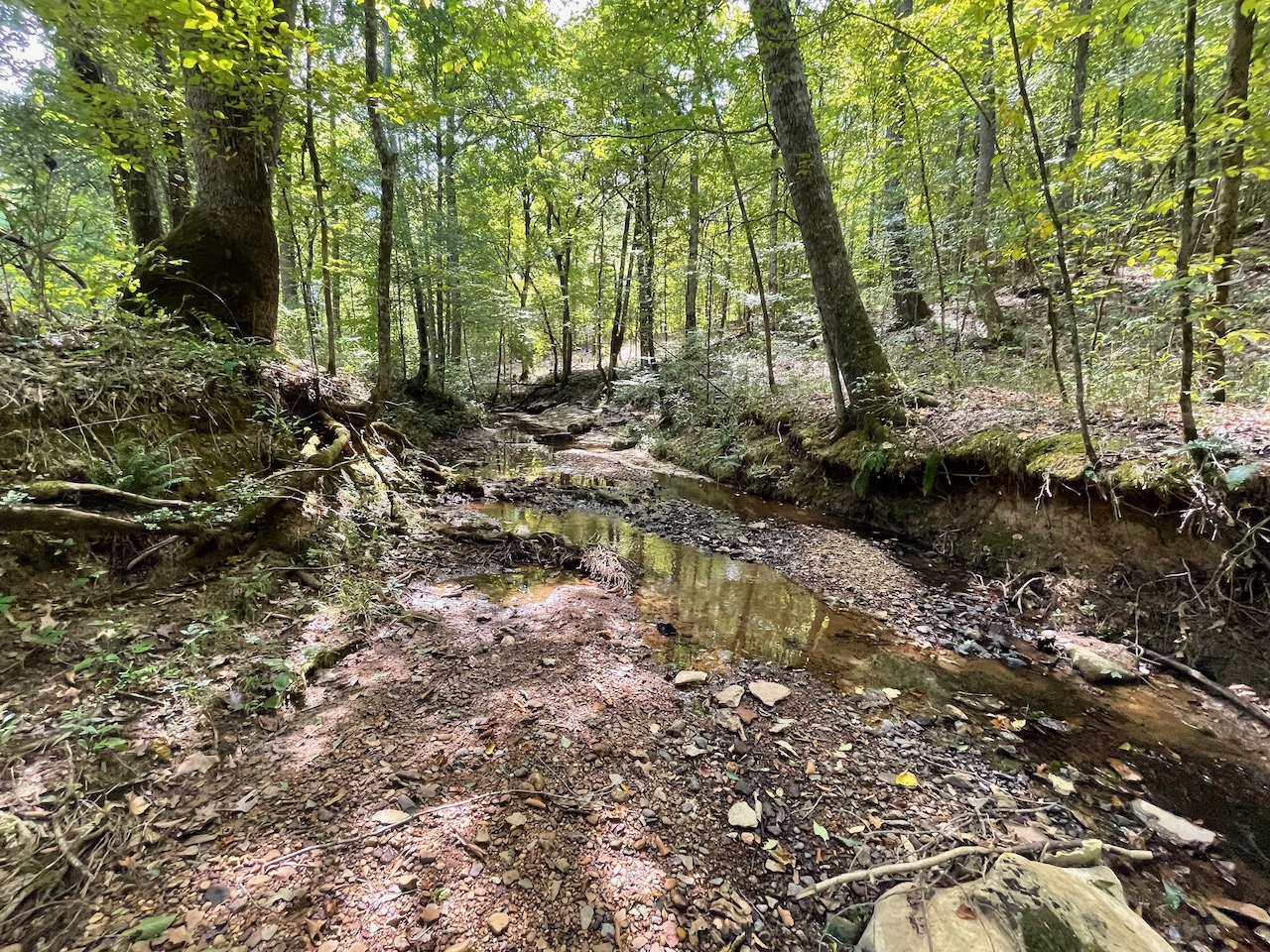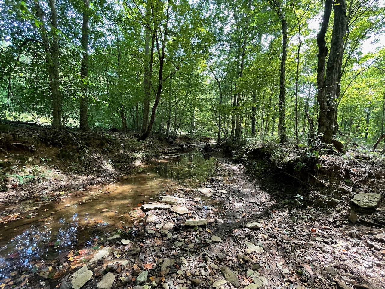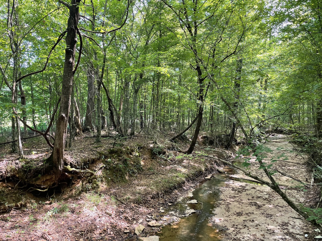 7.733 Acres – This owner financed land in Hardin County has frontage on two private roads, has a creek running through it and is partly open/partly wooded. The terrain is varied and ranges from flat land to gently sloping to steeper slopes on the western end of the property. Sweetwater Branch runs through the property and is a nice sized little creek. The land is accessed through private dirt roads that are accessible by a 4wd vehicle with a little bit of ground clearance. This land would be ideal for a weekend getaway, hunting, or for a remote off the grid homestead.