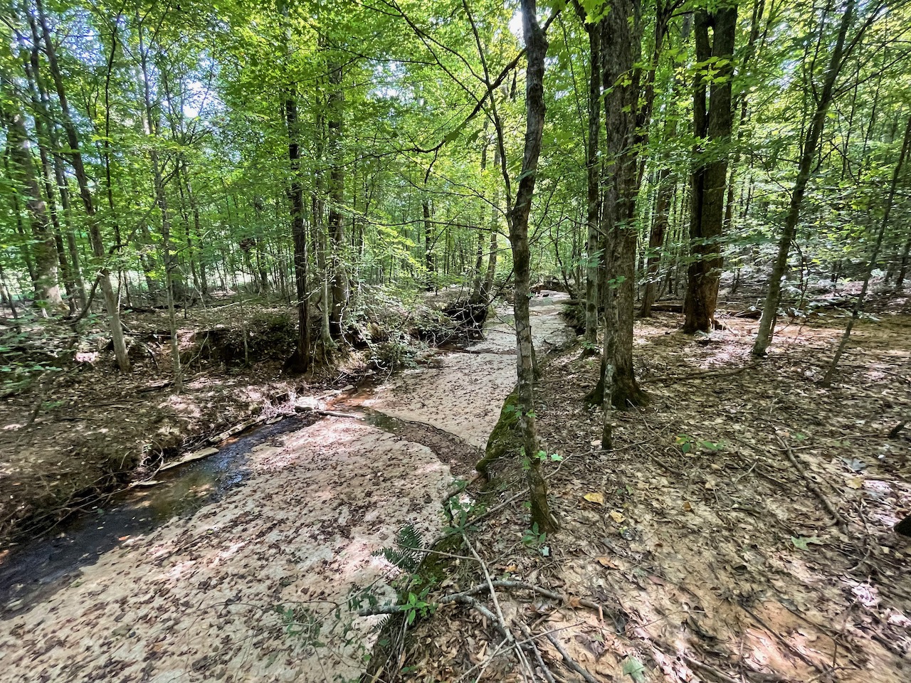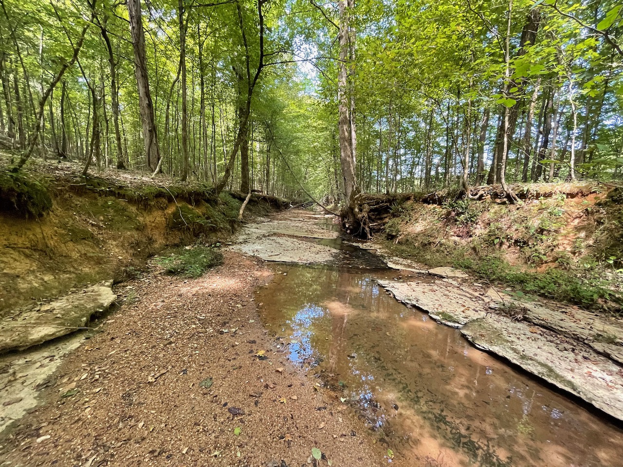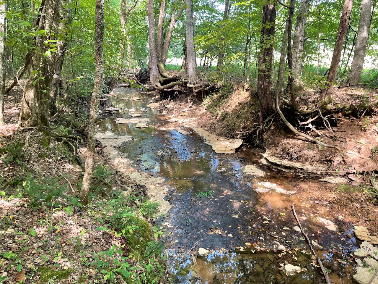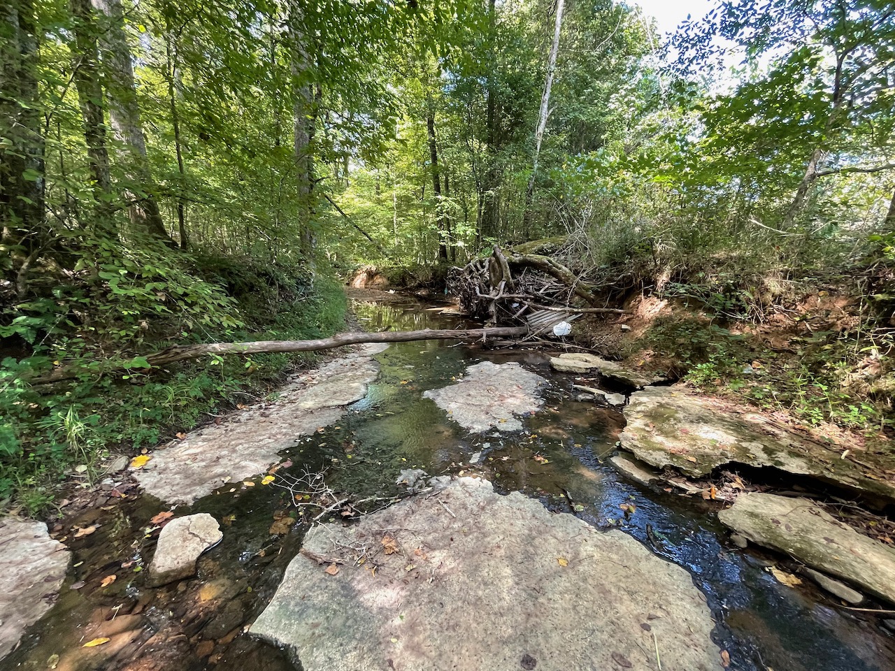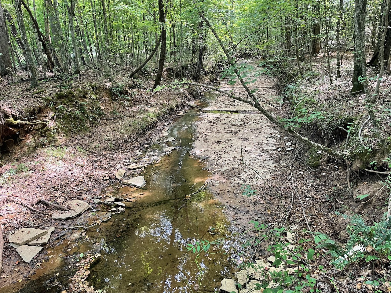 7.733 Acres – This owner financed land in Hardin County has frontage on two private roads, has a creek running through it and is partly open/partly wooded. The terrain is varied and ranges from flat land to gently sloping to steeper slopes on the western end of the property. Sweetwater Branch runs through the property and is a nice sized little creek. The land is accessed through private dirt roads that are accessible by a 4wd vehicle with a little bit of ground clearance. This land would be ideal for a weekend getaway, hunting, or for a remote off the grid homestead.
