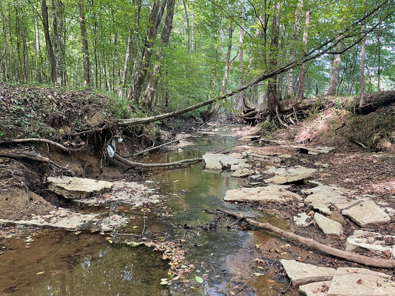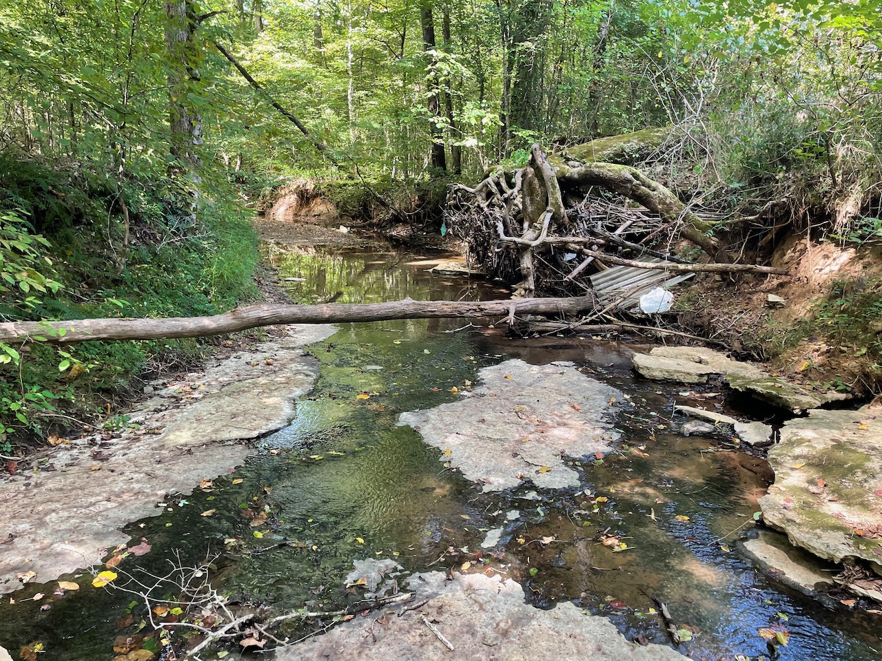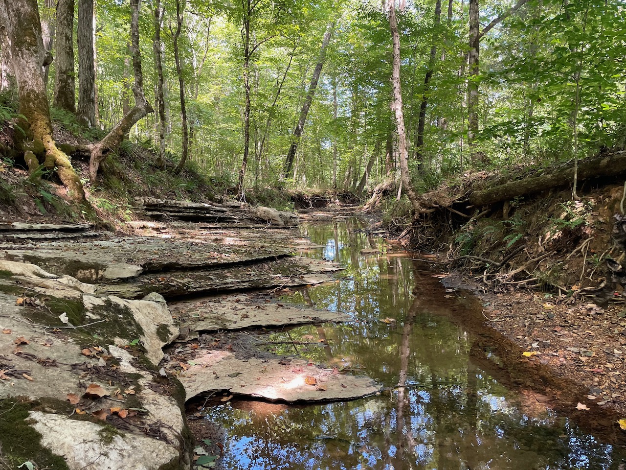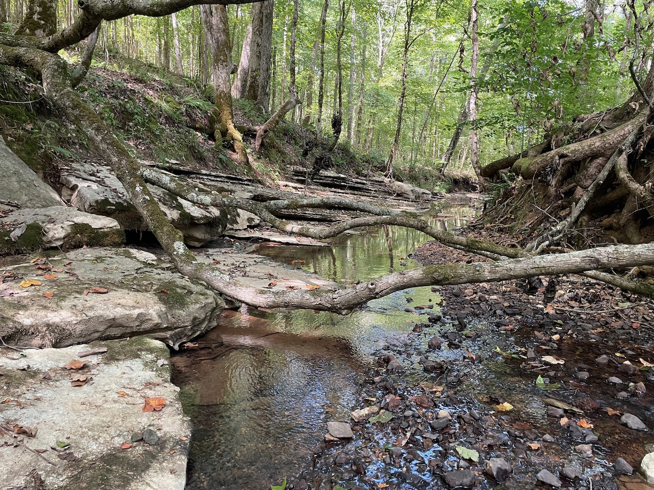 7.733 Acres – This owner financed land in Hardin County has frontage on two private roads, has a creek running through it and is partly open/partly wooded. The terrain is varied and ranges from flat land to gently sloping to steeper slopes on the western end of the property. Sweetwater Branch runs through the property and is a nice sized little creek. The land is accessed through private dirt roads that are accessible by a 4wd vehicle with a little bit of ground clearance. This land would be ideal for a weekend getaway, hunting, or for a remote off the grid homestead.