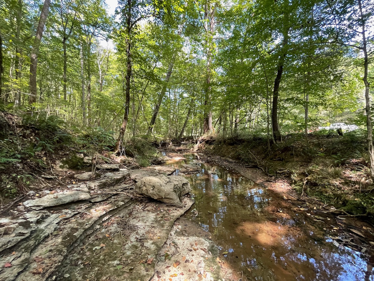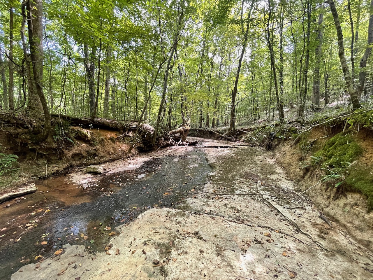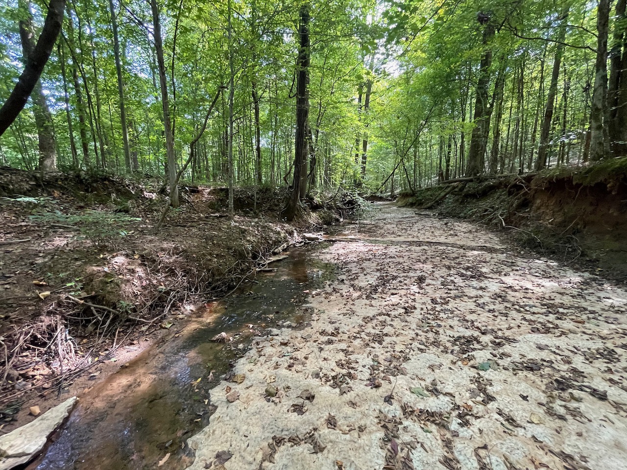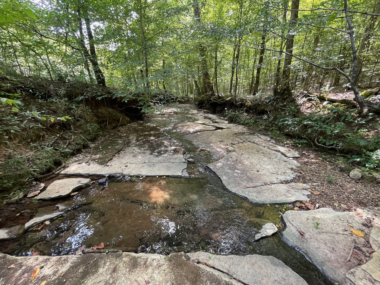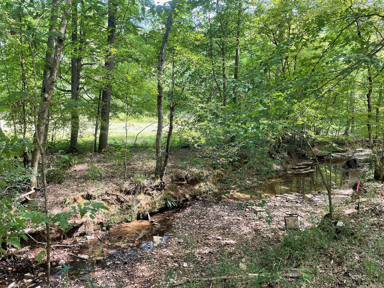 7.733 Acres – This owner financed land in Hardin County has frontage on two private roads, has a creek running through it and is partly open/partly wooded. The terrain is varied and ranges from flat land to gently sloping to steeper slopes on the western end of the property. Sweetwater Branch runs through the property and is a nice sized little creek. The land is accessed through private dirt roads that are accessible by a 4wd vehicle with a little bit of ground clearance. This land would be ideal for a weekend getaway, hunting, or for a remote off the grid homestead.