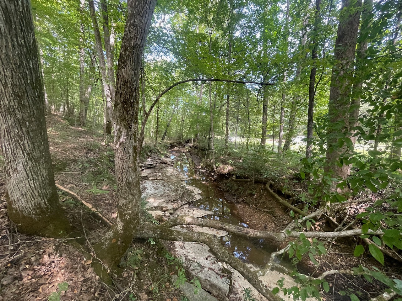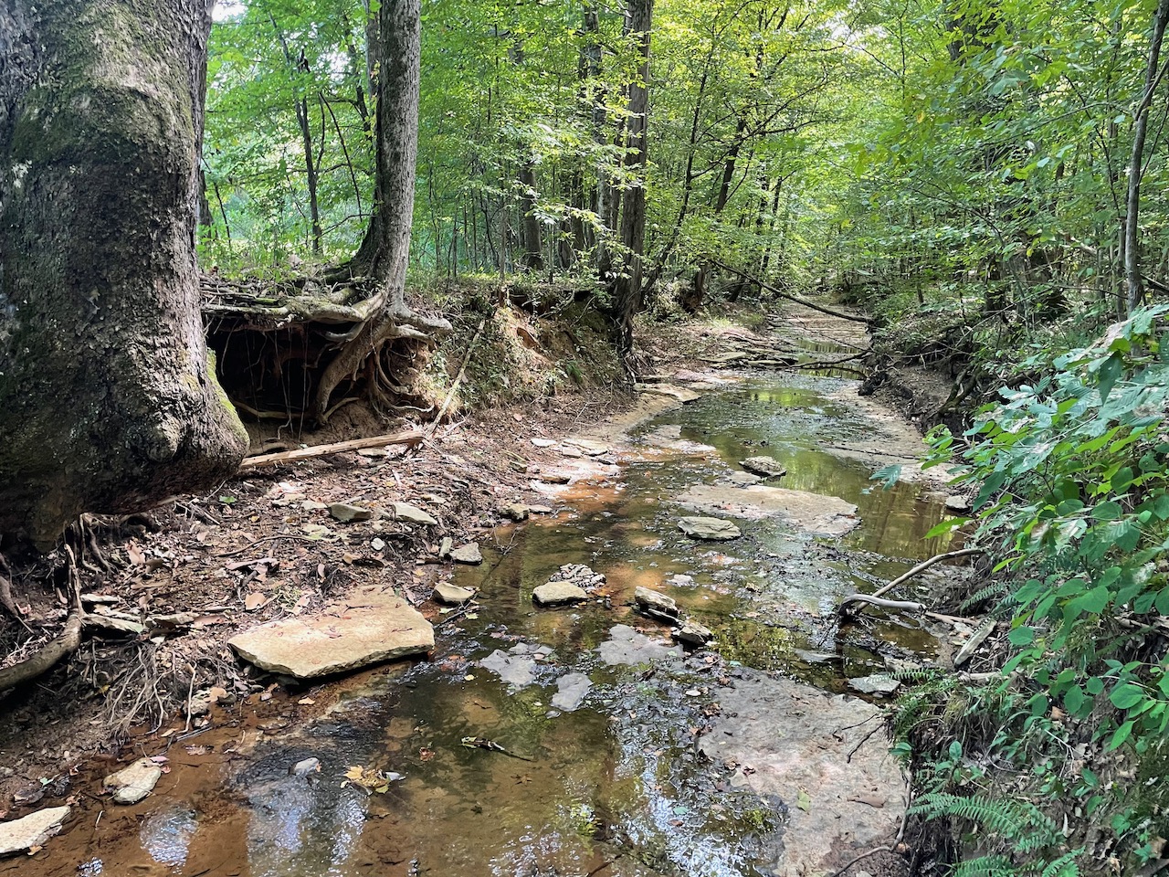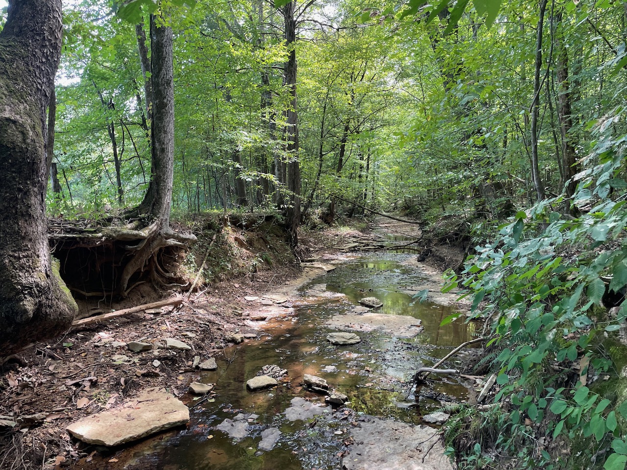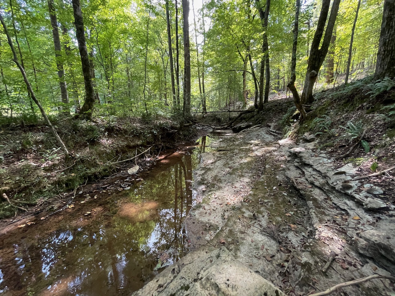 7.733 Acres – This owner financed land in Hardin County has frontage on two private roads, has a creek running through it and is partly open/partly wooded. The terrain is varied and ranges from flat land to gently sloping to steeper slopes on the western end of the property. Sweetwater Branch runs through the property and is a nice sized little creek. The land is accessed through private dirt roads that are accessible by a 4wd vehicle with a little bit of ground clearance. This land would be ideal for a weekend getaway, hunting, or for a remote off the grid homestead.