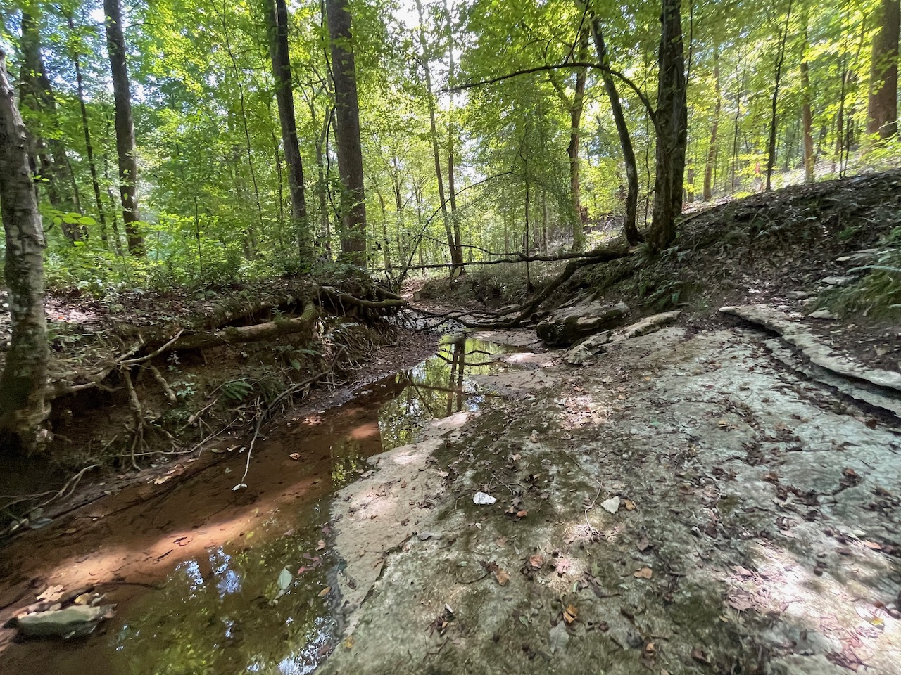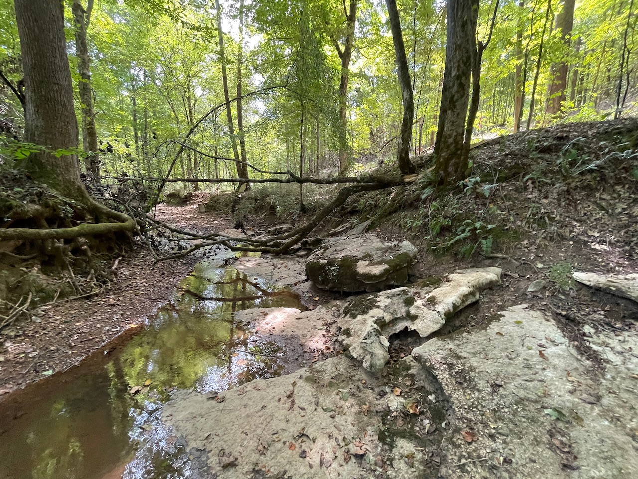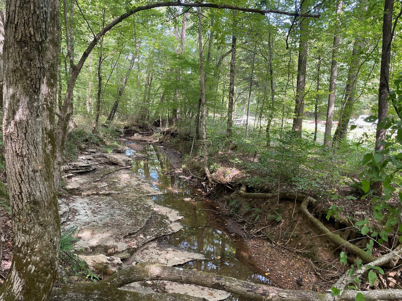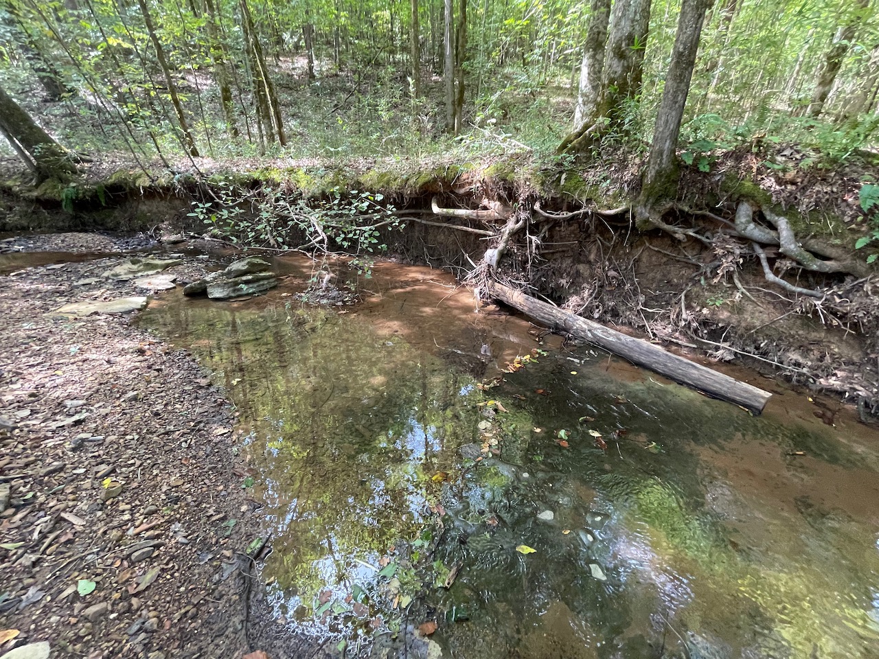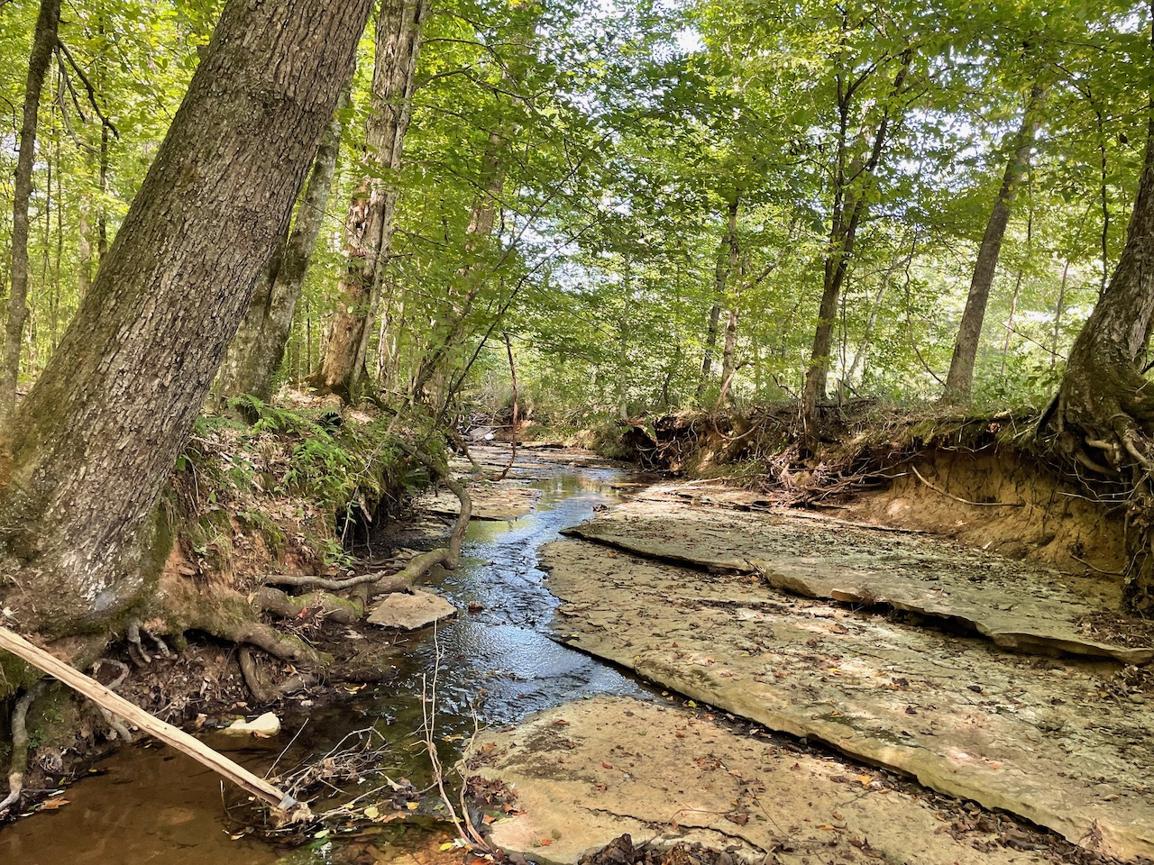 7.733 Acres – This owner financed land in Hardin County has frontage on two private roads, has a creek running through it and is partly open/partly wooded. The terrain is varied and ranges from flat land to gently sloping to steeper slopes on the western end of the property. Sweetwater Branch runs through the property and is a nice sized little creek. The land is accessed through private dirt roads that are accessible by a 4wd vehicle with a little bit of ground clearance. This land would be ideal for a weekend getaway, hunting, or for a remote off the grid homestead.