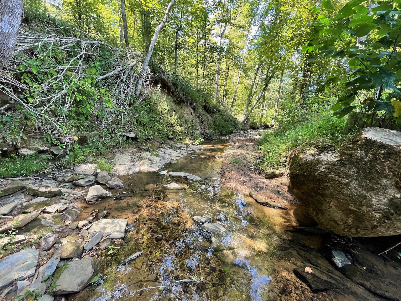 10.412 Acres – This owner financed land in Hardin County has frontage on two private roads, has a creek running through it and is mostly wooded. The terrain is varied and ranges from flat land to gently sloping to steeper slopes on the western end of the property. Sweetwater Branch runs through the property and is a nice sized little creek. The land is accessed through private dirt roads that are accessible by a 4wd vehicle with a little bit of ground clearance. This land would be ideal for a weekend getaway, hunting, or for a remote off the grid homestead.